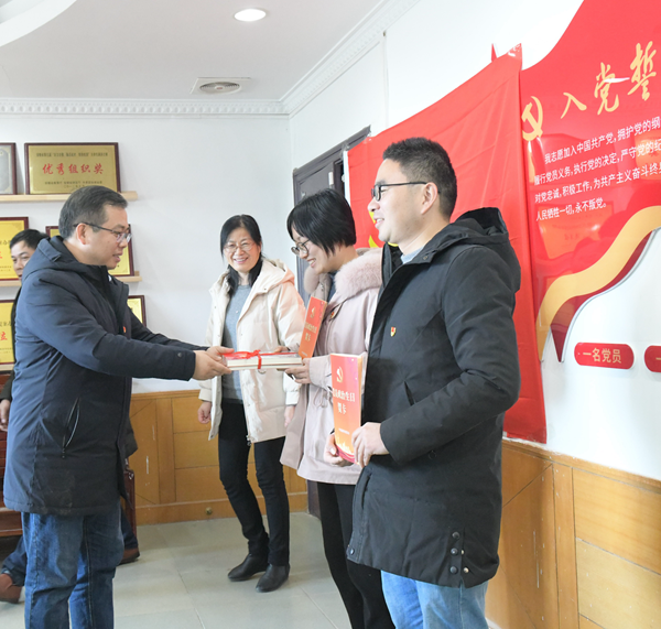 最后,周祥带领两位党员重温入党誓词并赠送“政治生日”礼物。两位党员分享自身成长经历,表示要继续不忘初心使命,坚定理想信念,发挥党员先锋模范作用,自觉接受党员和群众的监督,努力克服自身缺点,求是创新,不断提高自己的业务素养和工作能力,全心全意为师生服务。(文/吴蓓 图/胡佳 审/周祥)