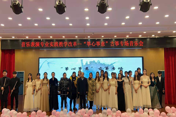 12月29日晚上7点,第二届音乐表演专业实践课(古筝演奏)改革成果汇报展——“筝心筝意”古筝专场音乐会在艺术楼音乐多功能报告厅成功举办,由音乐表演专业各年级学生进行表演。此次汇演活动是教研课题“微课在地方院校音乐表演古筝课程中的应用研究”和“音乐与舞蹈学类一流本科人才示范引领基地”的成果之一。演出由音乐表演专业项可翚和毛雪儿同学主持,艺术学院副院长褚春元及音乐表演专业贡婷老师和部分师生参加。