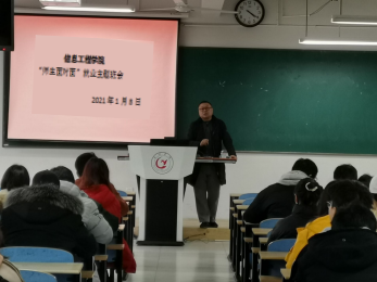 为帮助同学们实现更高质量和更充分就业,应对疫情防控常态化下的各种就业挑战,充分发挥学院领导在就业创业工作中的积极作用,2021年1月8日中午,信息工程学院于慎思楼中201教室举办“师生面对面”就业主题班会主题班会。班会由信息学院副院长吴其林主讲,学院各专业应届毕业生参加。
