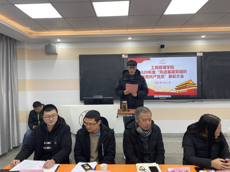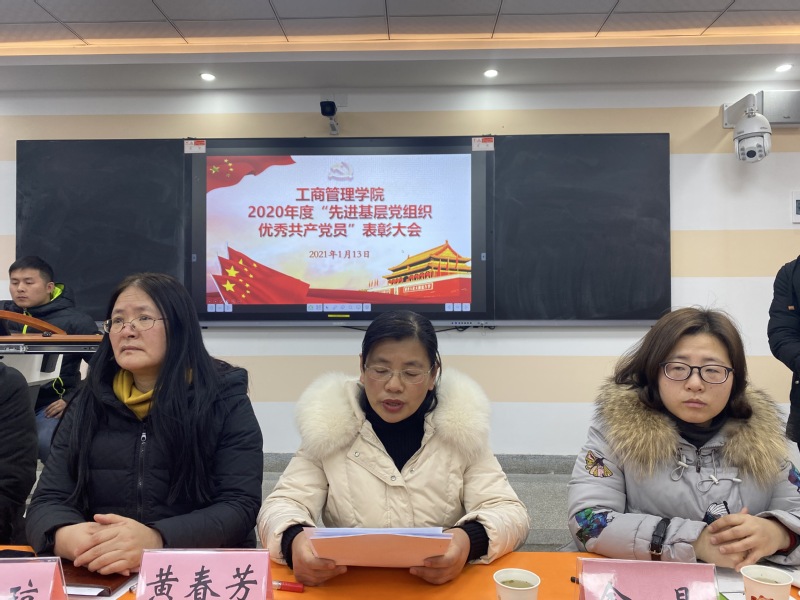 为迎接中国共产党成立100周年,进一步增强基层党组织的创造力与凝聚力,充分发挥共产党员的先锋模范作用,1月13日下午,工商管理学院在博学楼405教室召开2020年度先进基层党组织、优秀共产党员表彰大会。学院党政班子成员,各支部书记,科级以上干部,专职辅导员,全体学生党员以及受表彰人员参加了会议。会议由学院党委副书记黄春芳主持。