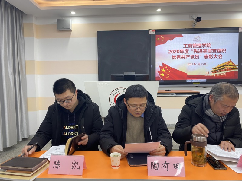 首先,会议在庄严的国歌声中拉开了序幕,副院长陶有田宣读了学院2020年度先进基层党组织、优秀共产党员表彰决定。