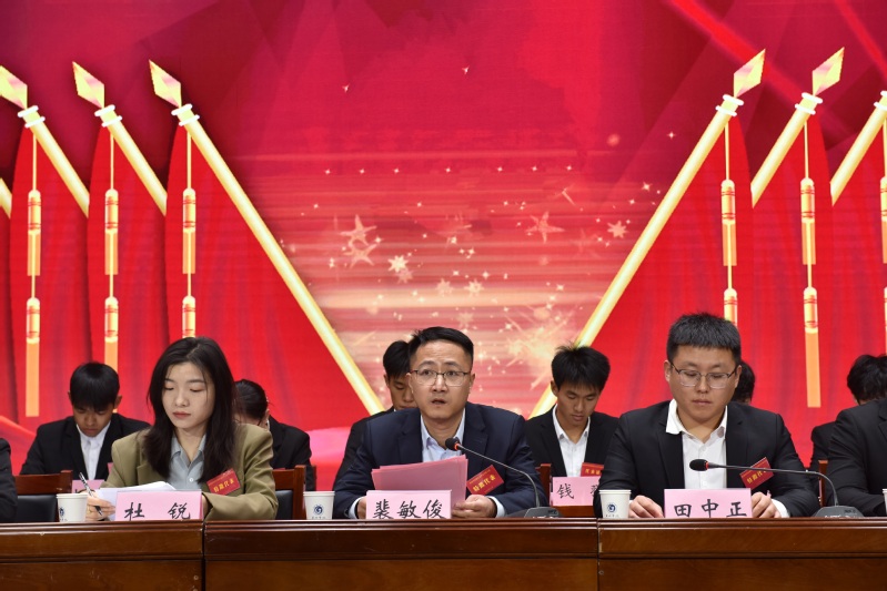 裴敏俊致开幕词,对大会的召开表示热烈祝贺,对学院团委、学生会过去的工作给予了充分肯定,同时他指出学生代表大会是青年学习政治生活中的一件大事,它不仅能够促进学院和学生的沟通交流,增强学院的凝聚力,还能够推动学生自我管理、自我教育、自我服务能力的提升。他对新形势下推进学院学生组织工作发展提出几点希望与要求:一、希望青年学子们要有“一片冰心在玉壶”的初心,做不忘初心的“追梦者”;二,希望青年学子们要有“咬定青山不放松”的韧劲,做全力以赴的“笃行者”;三,希望青年学子们要有“幽兰自芳志高洁”的品德,做作风严明的“自律者”。希望学生会成员们始终努力拼搏,紧握时代接力棒,用青春坚强的臂膀扛起时代重任,在实现中华民族伟大复兴中国梦的征程上,立足工作实际,以引领同学、联系同学、服务同学为己任,履行承诺,勇担使命,团结带领全院学生努力成为优秀的体育文化人,共同为学院的优质未来谱写更加辉煌的青春篇章。