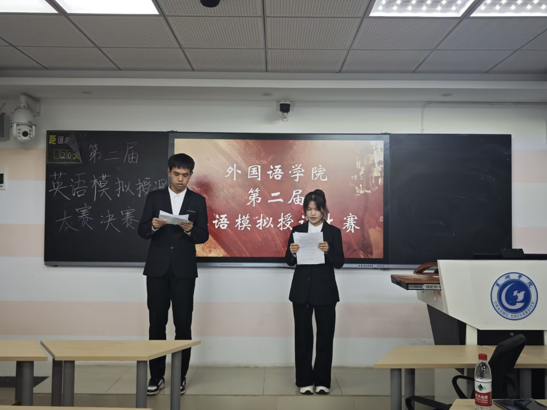 为丰富校园文化活动,提升同学们的授课技能,促进教学经验交流,营造“以赛促教,以赛促学”氛围,11月19日下午,外国语学院在明德楼104智慧教室举办“梦在讲台造就明日之师”第二届英语模拟授课大赛。本次比赛邀请到英语师范专业教研室景西亚、潘月红和徐琴老师担任评委,来自学院各年级的10余名参赛选手参与本次比赛。