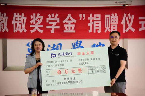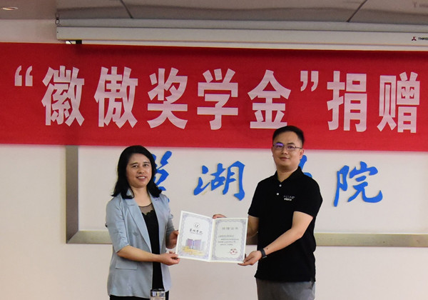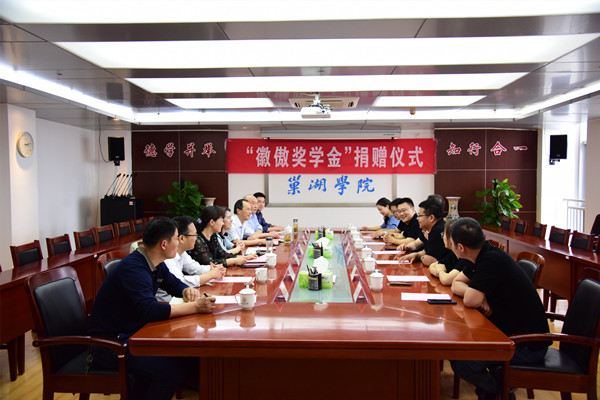 5月21日下午,由安徽徽傲电子商务有限公司校友捐资设立的“徽傲奖学金”捐赠仪式在校图书馆8楼第一会议室举行。