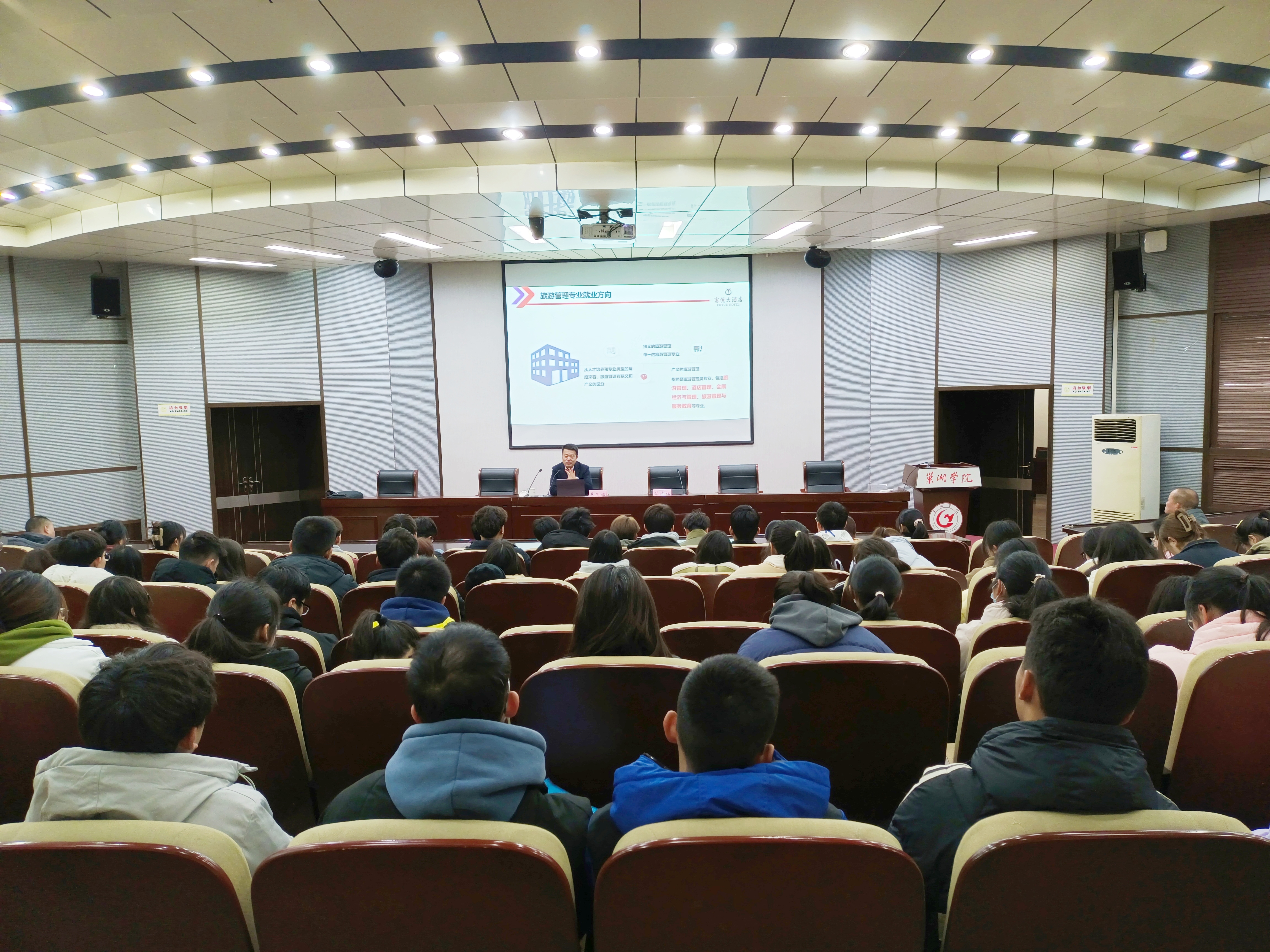 会议伊始,沈德福对优秀校友易圆满的学习成长经历进行介绍,并代表学院对其表示热烈欢迎。随后,易圆满作了题为“后疫情时代酒店业高端人才交流会”的主题报告。易圆满结合自身学习、实习、工作的成长经历,从“旅游管理专业就业方向”“旅游管理专业就业前景”“中国酒店业发展现状及前景”“对大学生几点建议”四个方面进行了经验分享和建议。易圆满指出旅游行业是全球十大热门行业之一,旅游管理专业在十大百万年薪职业中名列前茅。结合改革开放四十多年中国旅游行业的发展,告诉大家旅游行业就业前景和升值空间潜力巨大。通过对酒店行业未来趋势的分析,告诫大家要结合行业发展合理规划自己的专业学习,深耕细作,培育自我的专业能力。最后易圆满设问“10年后,你想成为什么样的人”,建议同学们要懂得“自律”,要懂得“一万小时法则”,要珍惜青春大好时光,勤学苦练,掌握过硬的技术本领,努力成为能工巧匠。整场报告会有理论有实践,有现实有展望,有谆谆教导有殷切期望。
