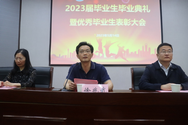 毕业典礼在庄严的国歌声中拉开帷幕。徐兆武向大家宣读2023年必赢76net官网优秀毕业生表彰决定,并给优秀毕业生颁发学院纪念奖品。