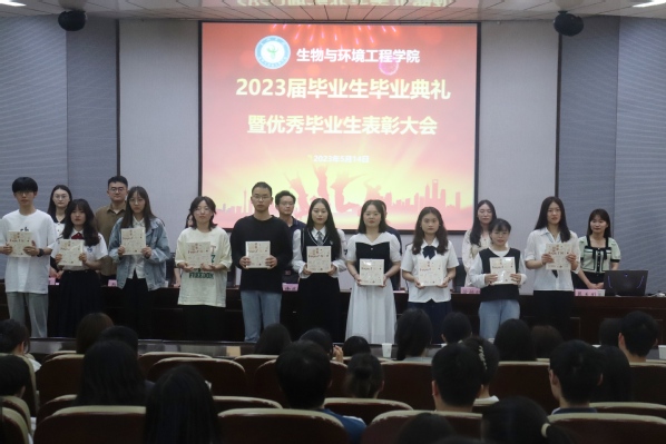 5月14日上午,生物与环境工程学院首届毕业典礼暨2023届优秀毕业生表彰大会在致知楼报告厅举行。生环学院副院长(主持工作)陈小举、优秀校友黄栎燚、教师代表高玉荣、团委书记晁天彩、辅导员潘晨、邢权,全体毕业生和部分教师参加。毕业典礼由生环学院党委书记徐兆武主持。