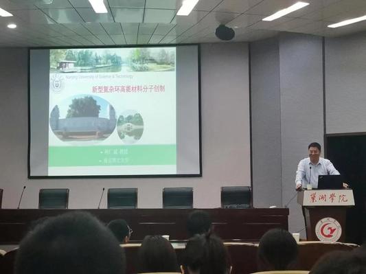 5月26日下午,化学与材料工程学院89届化学系毕业生、南京理工大学程广斌教授学术报告在致知楼学术报告厅举行,报告主题为“新型氮杂环高能材料分子创制 ”,化材学院全体教师及应化、化工专业的学生聆听了报告,报告会由化材学院副院长王小东主持。
