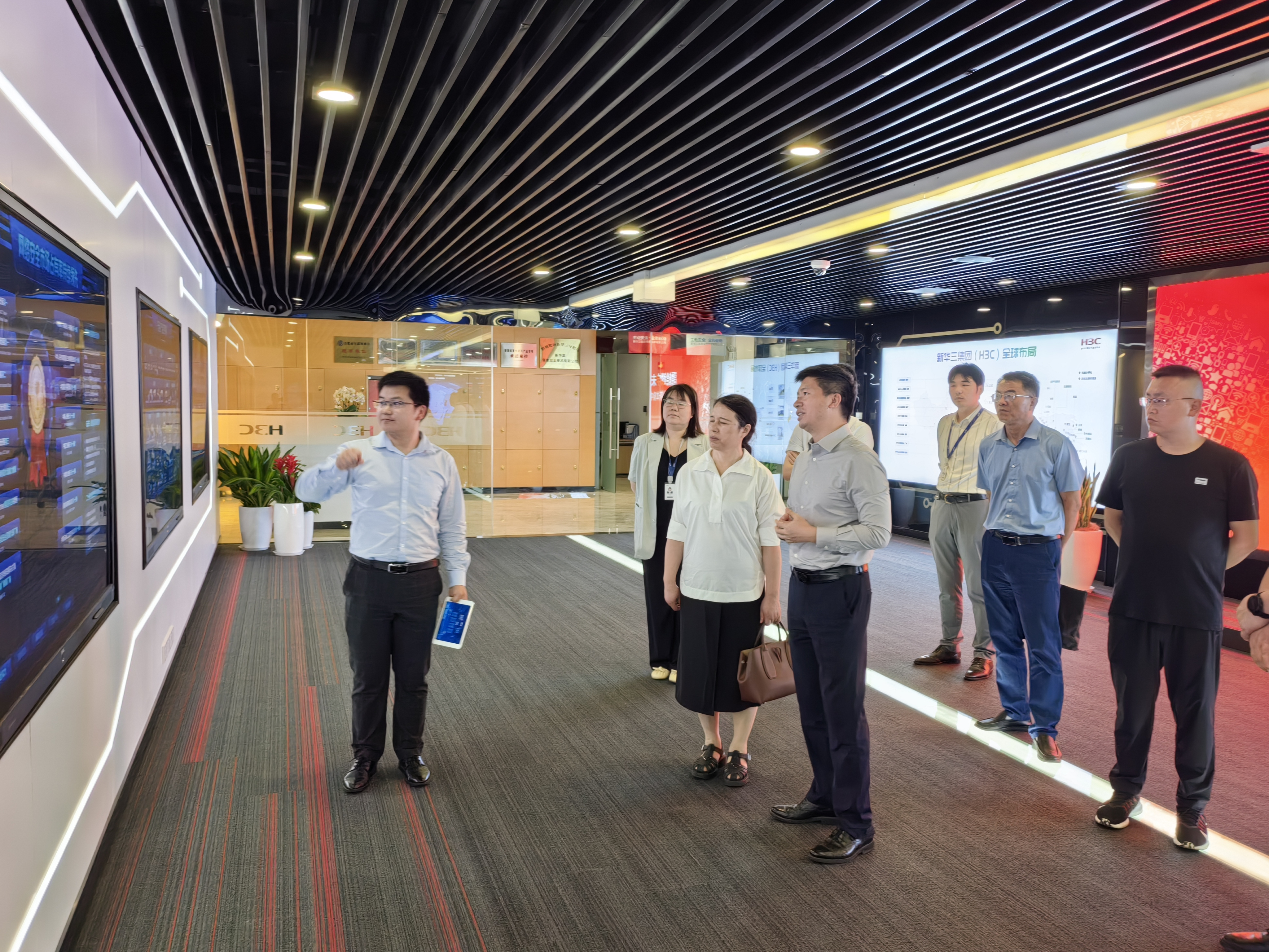 在企业相关人员的陪同下,朱定秀参观了企业发展墙、研发设备、技术产品、工作场地等。座谈会上,朱定秀分别与各企业负责人开展交流,了解企业概况、发展规划及用人需求,认真听取企业在校企合作方面的思路、做法及建议,并就共建优质实习就业基地、产学研合作、人才培养等议题开展了深入交流讨论。朱定秀表示,访企拓岗专项活动是助力毕业生充分就业的重要途径,希望学校和企业进一步加深合作层次,为学生提供学习和就业平台,为企业和地方的发展注入活力,同时拓展高校与企业的交流渠道,促进双方共同发展。校企双方在实习就业、专业建设、课程设置等多方面达成了合作意愿,朱定秀与企业方共同为“实习就业基地”挂牌。
