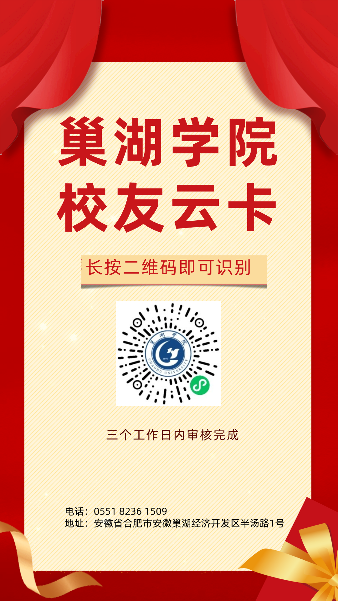 如果是三五好友相聚,您长按下方二维码填写信息即可申请校友卡,将在三天内审核通过,入校时登记校友卡+身份证即可。