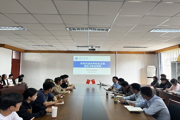为推动就业实习工作扎实有序开展,引导学生树立正确的就业观和择业观,数学与大数据学院于10月14日下午在笃行楼203会议室召开优秀校友就业指导交流会。本次交流会荣幸邀请了2009届校友王刚、2011届校友孙中博作为嘉宾,分享就业经验,畅谈求职感悟。会议由学院党委书记史国东主持,副院长陈佩树、副书记郝江锋、副院长彭维才及学生代表参会。