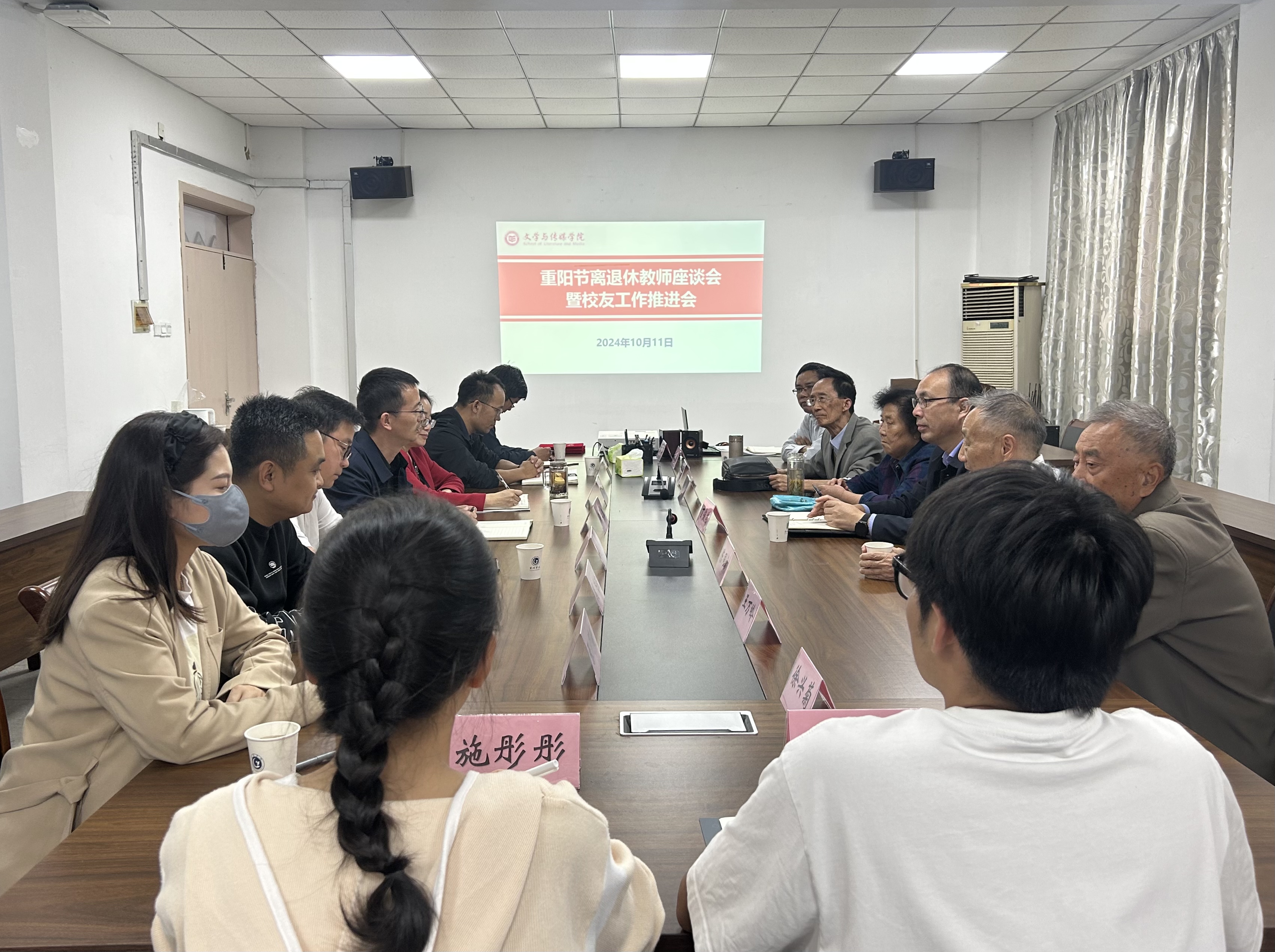 为加强离退休教师与学院的联系,推动校友工作进一步发展,10月11日,文学与传媒学院在敏行楼会议室召开重阳节离退休教师座谈会暨校友工作推进会。学校党委委员、副校长丁俊苗出席会议,学院领导班子成员、离退休教师、校友顾问、部分教师代表以及校友工作志愿者参加会议。会议由袁凤琴主持。