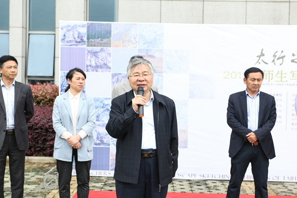 朱灿平在开幕式上进行了热情洋溢的致辞:艺术学院自办学以来坚持“大美术教育观”的办学理念,确立“艺文传承,素质拓展,多元发展,个性培养”十六字办学原则,重视美术实践能力与人文素质整体综合提升;重视学生思维能力的培养,将创意意识贯穿于教学过程中,充分发挥了学生的潜能。这次2016级美术学及中国书画方向专业三个班远赴太行山写生实践教学活动便是对艺术学院办学理念的一次成功实践;美术学专业因其专业特性,要求学生面对真实而鲜活的世界去思考和探索,去感悟自然的千变万化,去训练自己提炼自然物象、提升造型意识的能力;去激发自己艺术创造和创新的热情。太行山巍峨雄伟,历史人文内涵丰富,是美术学专业理想的写生教学基地。本次美术学及书画方向三个班94位同学在李超峰、赵关键、孙国良三位指导教师的带领下圆满完成了教学实践活动,这次画展体现了同学们对专业的热爱和对艺术创作的热情,亦是本次教学活动成果的一次集中展示;教育部提出的“五育并举”中,强化德育、体育、美育等,突出德育实效,强化体育锻炼,增强美育熏陶,促进学生全面发展,艺术学院的学生尤其要注重美育上的熏陶。在此,对参加本次画展的师生表示热烈的祝贺,也希望艺术学院坚持自己的办学理念,夯实写生实践课程建设,不断取得新成果。