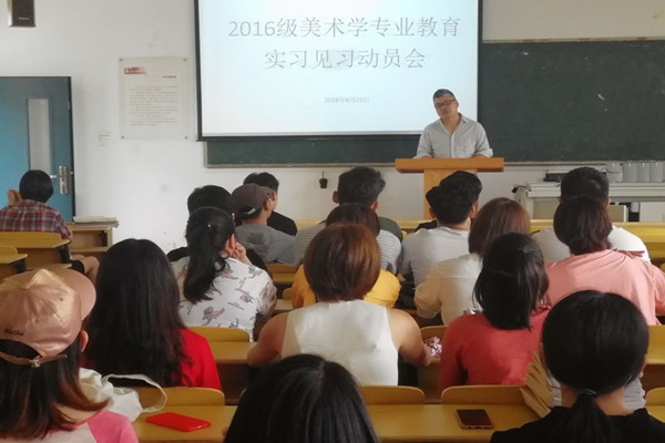 为全面落实学校《关于开展2020届师范生教师教育实习工作的通知》要求,根据艺术学院的教学工作安排, 6月25日下午16:00,艺术学院在310教室召开了2020届师范生教育见习动员大会。此次教育见习动员大会由美术学教研室主任李超峰主持,艺术学院2020届学生辅导员何冬冬老师、美术学三个班共94名同学、五名见习指导教师参加。