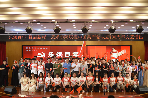 为庆祝中国共产党成立100周年,7月2日晚,由艺术学院分党委主办,艺术学院团总支、音乐表演教研室共同承办的“乐颂百年、舞起新程”——庆祝中国共产党成立100周年文艺演出在艺术学院音乐多功能厅隆重举行。出席本场演出的有艺术学院分党委书记王光富、学院分党委副书记院长杨松水、艺术学院分党委副书记李勇、学院副院长李超峰和艺术学院其他师生党员及部分学生观看了此次文艺演出。
