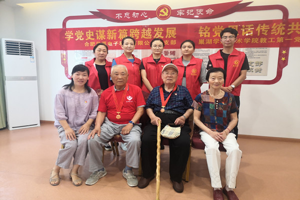 为扎实开展党史学习教育,深入推进“我为群众办实事”实践活动,在中国共产党建党100周年之际,艺术学院教工第一支部联合合肥贝禹电器有限公司党支部赴湖光社区长者之家开展慰问,并聆听老战士讲党史。