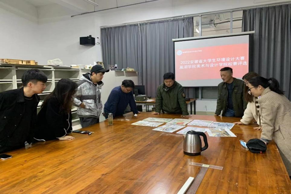 11月18日上午,美术与设计学院2022年度安徽省大学生环境设计大赛校赛评审工作在润德楼环境设计实训室进行,评审会由环境设计专业教研室主任肖康主持,教研室全体教师参加。