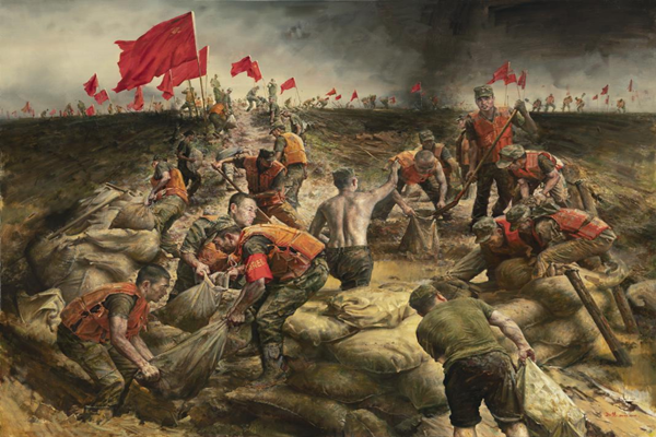 孔慧申报的油画《抗洪抢险》,紧扣“抗洪有温暖,军民鱼水情”展开,把作品画在部队官兵的抢险一线的阵地,书写充满能量和使命的抗洪进行曲,再现了战士们忠诚坚定的意志与吃苦耐劳的精神,把美术创作融入实现中国梦的伟大实践中,呈现出现实主义创作崇高的艺术价值。