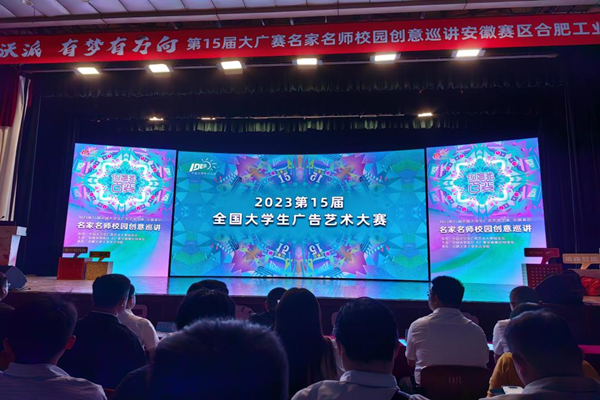 根据第15届全国大学生广告艺术大赛的时间节点安排,为更好地组织学生参赛,加强师生对大广赛的了解,从而创作出更加优秀的艺术作品,2023年5月13日,由美术与设计学院视觉传达设计系副教授汤艳艳、曹艺、安静老师和动画系副教授余晓燕作为带队教师,带领美术与设计学院各专业学生代表前往合肥工业大学参加第15届全国大学生广告艺术大赛安徽赛区启动仪式暨首场宣讲会活动。