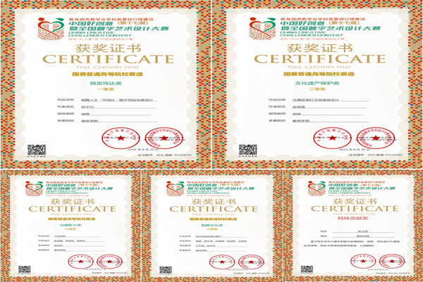 自赛事启动以来,学院安排专人负责组织校赛选拔推荐,省赛评审获得省级奖项8项,其中4件作品脱颖而出推荐国赛并斩获国奖。分别为徐婷老师指导学生作品《视障人士“可视化”医疗药品包装设计》和《汪满田鱼灯文创桌游设计》分获一等奖和二等奖,田世彬老师指导学生作品《三瓜兄妹》和汪永亮老师联合指导学生作品《李克农故居虚拟展示》均获三等奖,校赛负责人陈正凯老师获特殊贡献奖。