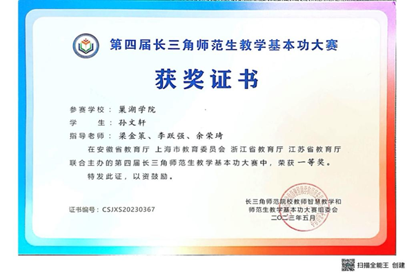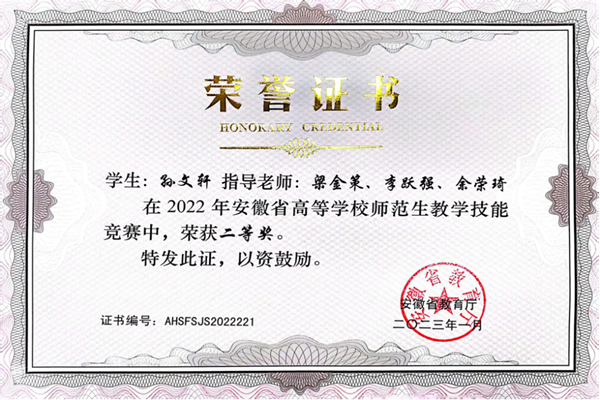 同时,第十三届安徽省高等学校师范生教学技能竞赛成绩也正式揭晓,该比赛由安徽省教育厅主办,安徽师范大学承办。在综合组(美术)的竞技中,我院美术学专业孙文轩同学脱颖而出,荣获二等奖。此外,美术学专业王一桢、池露、张文静以及刘晓悦、丁茜、范祥雨两组同学在教具组别中均获得了三等奖,充分展示了我院师范生的技能水平。