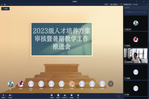 8月10日下午,美术与设计学院在学习通平台召开线上2023级人才培养方案审核暨暑期教学工作推进会。学院党政领导、学院教学指导委会成员、各专业负责人、实验中心主任、教研室主任、校院级督导、全体辅导员、教学秘书办公室成员参加了会议,会议由副院长田世彬主持。