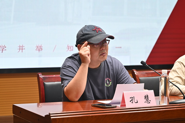 教师代表孔慧的发言以“盛年不重来,一日难再晨”为主题,他希望同学们一要早立目标、不负青春;二要居安思危,以学业上的成就和突破,化解职场之忧;三要转变身份,展现大学生精神与风采。