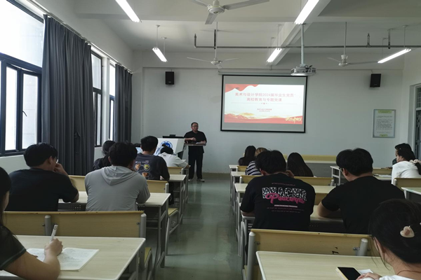5月20日下午,美术与设计学院在润德楼南206教室开展毕业生党员离校教育并为毕业生上专题党课,学院党委书记古国平、副书记李勇、学生支部书记及53名毕业生党员参加活动。