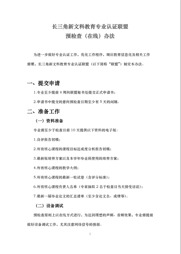 长三角新文科教育专业认证联盟预检查(在线)办法