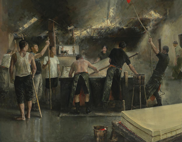 《传承千年——宣纸制造》,180x230cm,2022-2023年