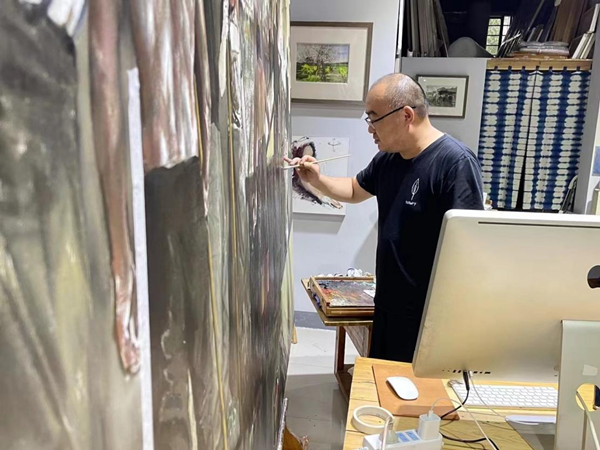 美术与设计学院高度重视第十四届全国美展工作,经学院积极动员和组织,多名教师踊跃参与全国美展的绘画创作。孔慧老师近年来的绘画创作一直致力于优秀传统文化的挖掘研究和视觉呈现。本次入选作品《传承千年——宣纸制造》是通过深入生活、实地考察,以安徽泾县特产宣纸为主题创作而成。宣纸享有“纸中之王,千年寿纸”的美誉,其传统制作技艺列入人类非物质文化遗产代表作名录。作品主要表现的是造纸师傅们捞纸的生产流程,凸显了师傅们高超娴熟的技艺,歌颂了大国工匠薪火相传的精神。