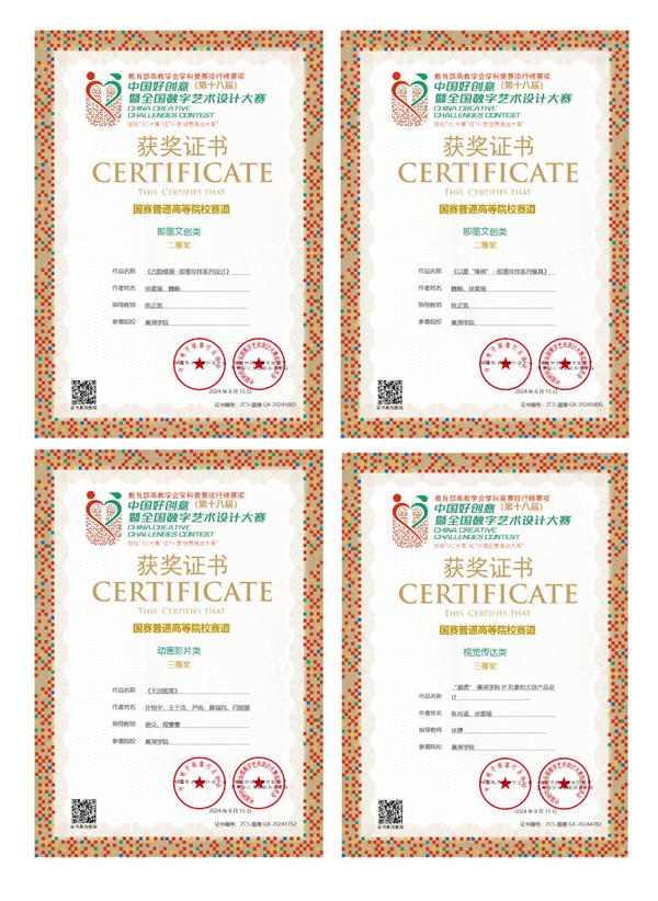 近日,第18届中国好创意暨全国数字艺术设计大赛国赛获奖名单在中国好创意大赛官网正式公布。前期,美术与设计学院历时数月,组织专业教师指导学生开展作品创作并精心打磨参赛作品,经过校赛、省赛选拔推荐,最终共斩获国赛奖项9项,其中学生组6项(二等奖2项、三等奖4项)、教师组3项(二等奖1项、三等奖2项),另我院赛事负责人获特殊贡献奖。