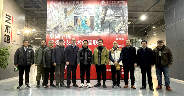 开幕式上,田世彬介绍了观展嘉宾和参展校友,并表示热烈欢迎和衷心感谢。随后李超峰发表了热情洋溢的致辞。他说,优秀校友艺术作品联展是巢艺撷赏美育系列展之一,是学校美育教育的重要活动。此次参展的三位校友是美术学院优秀校友的代表。三位校友毕业后一直与学院保持紧密联系,与老师们亦师亦友,相互探讨、交流艺术创作的心得体会。他们为此次展览精心准备了90幅精品力作,包括油画、水彩、综合材料、中国画等画种。作品无论形式感、作品表现力等都极具功力。三位校友遴选个人优秀作品并通过艺术作品联展的方式回馈母校的做法,值得赞扬和推广。李超峰在致辞中表达了三点希望与展望:一是希望三位校友与学院继续保持紧密联系,继续以自己的专业成就回馈母校;二是希望在校同学们以优秀校友为榜样,在毕业后继续在专业上进行钻研并取得成就,十年后也回母校举办展览;三是学院将以此次校友展览为契机,积极与更多的校友联系,未来将适时举办优秀校友系列联展,学院将与各位校友携手前进,为国家培养更优秀的艺术人才,为地方经济服务,助力文化艺术发展。优秀校友朱建刚、翟富军、刘向阳分别进行了发言。他们回忆了在校读书的点点滴滴,并表达了对母校的感谢,感谢在校期间老师的辛勤付出,感谢母校为他们提供了展示作品的机会,感谢母校的惦念,并表示今后将继续尽自己所能为学校的发展做贡献,同时寄语学弟学妹们珍惜在学校的学习机会,在青春年华时努力完善、充实自己,学好专业,掌握看家本领,以应对未来复杂的挑战。三位校友随后还分别向学校捐赠了一幅作品,李勇代表学院接受了捐赠,李超峰向校友颁发了必赢76net官网收藏证书。最后,李勇宣布2024年必赢76net官网优秀校友艺术作品联展正式开幕。开幕式结束后,与会领导、嘉宾及师生代表进行合影留念。