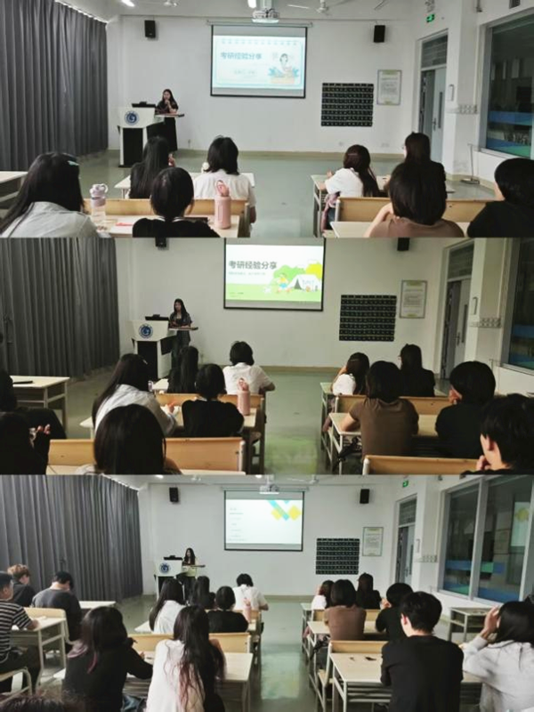 21级中国书画王婷(录取学校:江苏师范大学)、21级环境设计徐娩婷(录取学校:南昌大学)、21级美术学汤娜娜(录取学校:安徽师范大学)依次分享了各自考研经验。三位同学分别从专业复习重点、备考心态调整、院校选择、面试准备等方面进行了经验交流,并结合自身经历,寄语学弟学妹们坚定信心,积极备考。