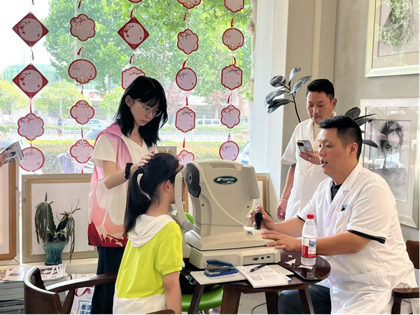 7 月 16 日上午,阳光正好,“瞳心暖巢” 团队在指导教师陈建的带领下,与合肥瑶海普瑞眼科医院的医生团队一同抵达非凡艺术教育。刚走进活动室,队员们便迅速分工:有的协助医生摆放视力表、有的提前与孩子们沟通,用亲切的语言缓解他们对检查的陌生感。