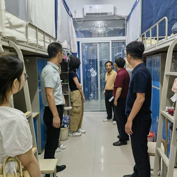 迎新活动结束后,学院党委书记古国平、党委副书记孙定海、团委书记陈建、2025级新生辅导员李本祥和辅导员郭文静共同走访新生宿舍,亲切询问新生住宿适应情况,鼓励大家尽快融入大学生活、努力学习,并嘱咐同学们要保持宿舍整洁、营造和谐的人际关系、遵守校纪校规、不使用违禁电器、养成早睡早起的良好习惯。
