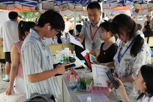 学院迎新展台特别设立了“党员先锋示范岗”,党员们亮身份、做表率,积极投身服务一线,充分发挥党员的模范带头作用,体现出良好的服务意识和奉献精神。