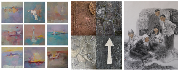 《筑梦曲》代洪祥  油画    《路》王睿 综合材料  《十月》郎千红 中国画