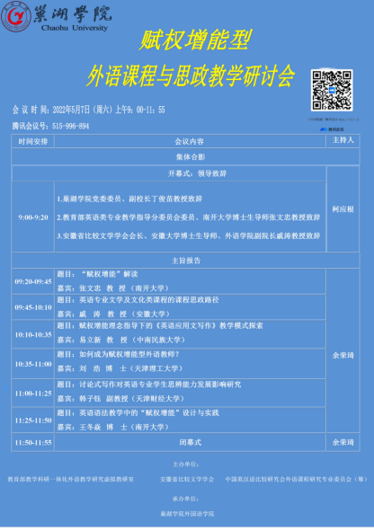 会议时间:2022年5月7日(周六)上午9:00-11:50;线上会议:(腾讯会议:515-996-894)