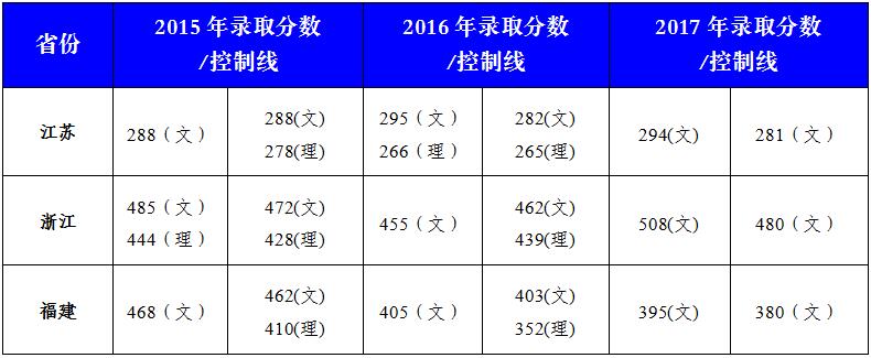 我院在外省2015-2017年录取分数线(含省控线)